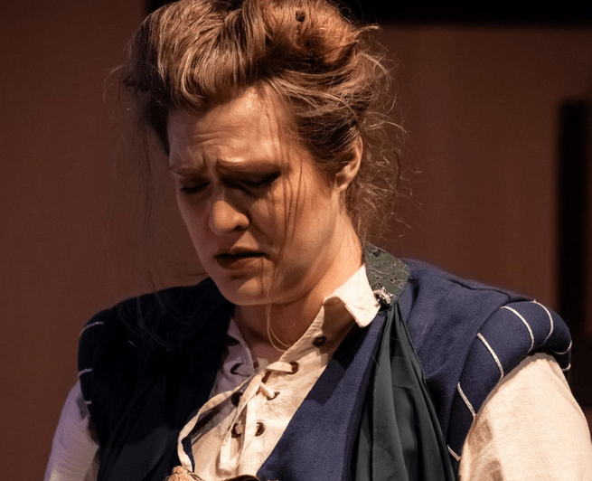 Taya Dixon gave Laura an agency that is rarely, if ever, seen in Menagerie productions. She was not just a helpless innocent but a moving force all on her own, acting as both mediator between her brother and mother, as well as emotional caretaker to Amanda. Dixon showed us a multi-faceted character who wants her innocence but seems to know it’s always out of reach. She also depicted chronic pain for Laura, which I felt despite Laura’s disability has rarely been properly showed onstage.